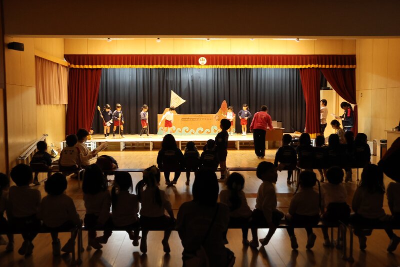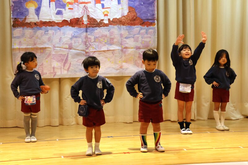 幕が上がっても、余裕な感じのお子さまたち。演技もからだ全体をつかって表現しています。
