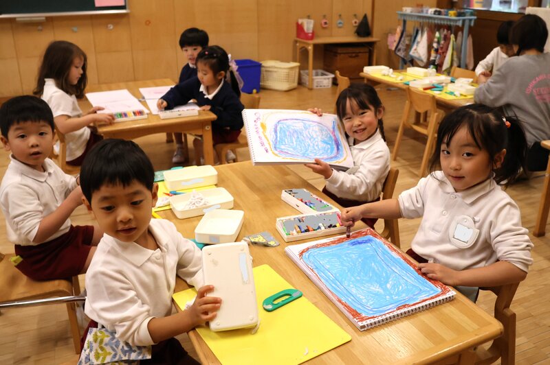 こちらは、「りす組」さん。「りす組」さんは、絵の具を使った製作をしていたのですが、jimjimがお邪魔したときには、すでに終了……。残念。