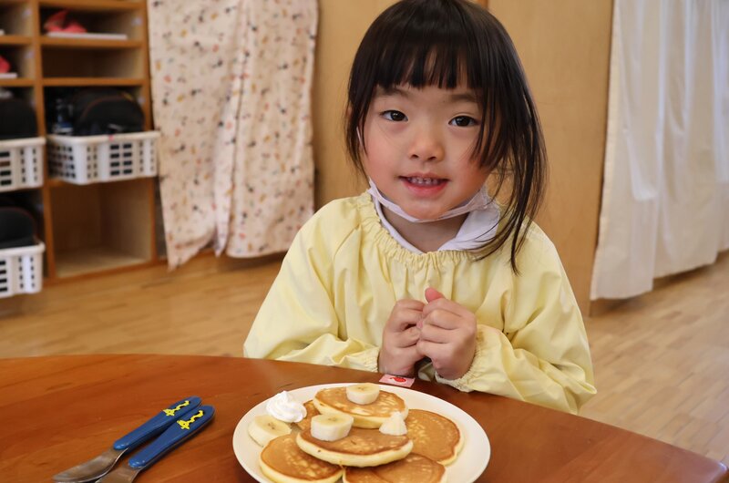 「パンケーキ」なんて、かわいらしさ粒ぞろいの「いちご組」さんには、何ともピッタリのテーマではありませんか。
