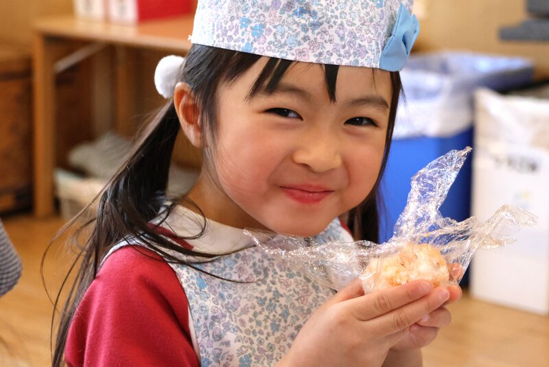 こうして「おにぎり」ができあがったら、待望の「いただきます」です。