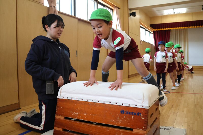 まだ「跳び箱」に慣れていないお子さまたちですから、練習をしながら「跳び箱は、こういうふうに跳ぶんだ」ということがわかっていけばいいと思います。