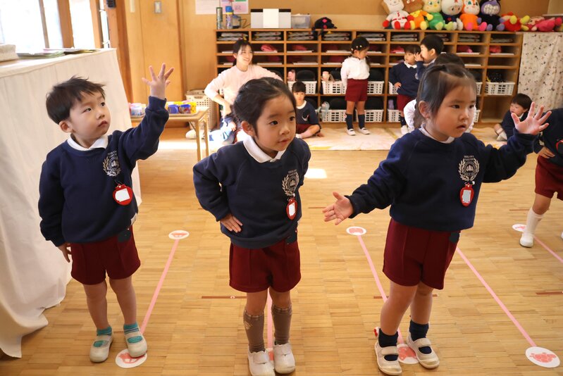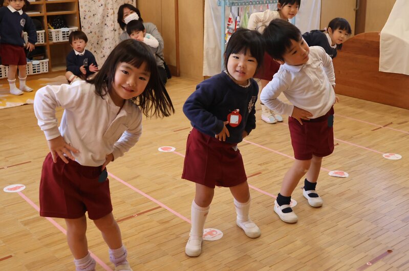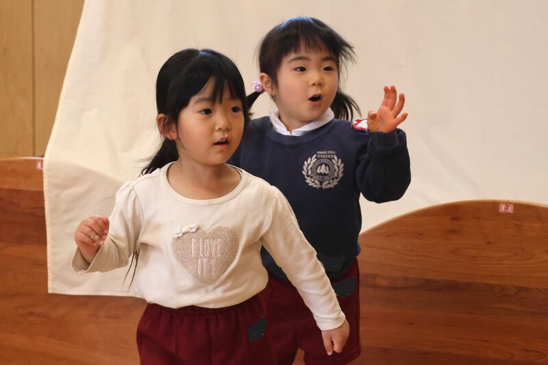 年長さんは、3クラスが「つき組」さんのお部屋に集まって、卒園式のうたの練習をしていました。先生のアドバイスを受けながら一生懸命に歌うお子さまたちの横顔をみていますと、年少さんで入園してきた頃のお顔が思い浮かんできます。成長しましたよね。残り少ない幼稚園生活を、精いっぱい楽しんでください。