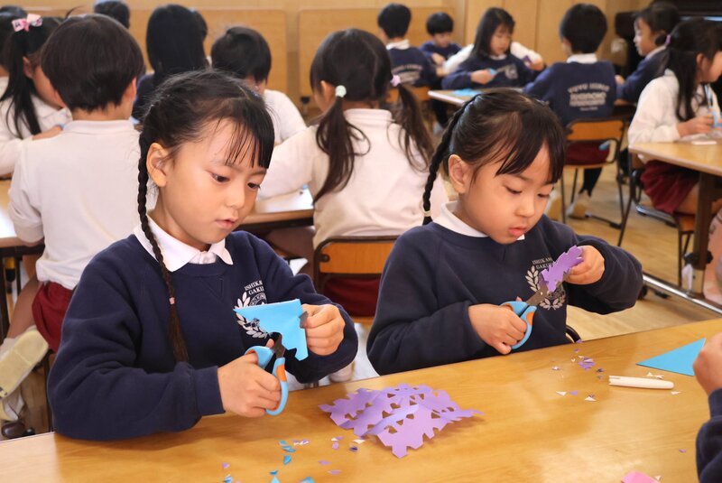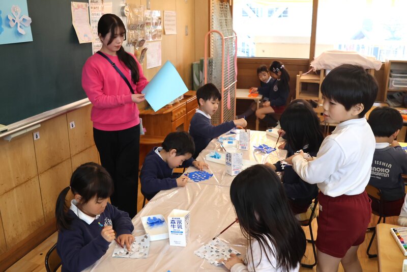 その年長さんは、お部屋に戻ってから「紋切り」の製作をしていました。