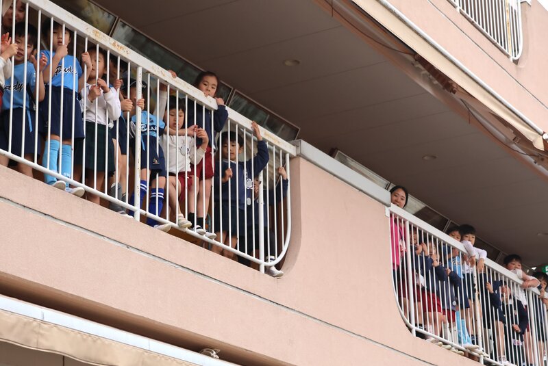 しかも、2階のテラスから届く年長さんたちの声援がスゴイ。もうすぐ1000回に到達するお友だちを、年長さんが全員で応援しているんです。いい、すごくいい。これぞ、杉之子幼稚園の子どもたちです。