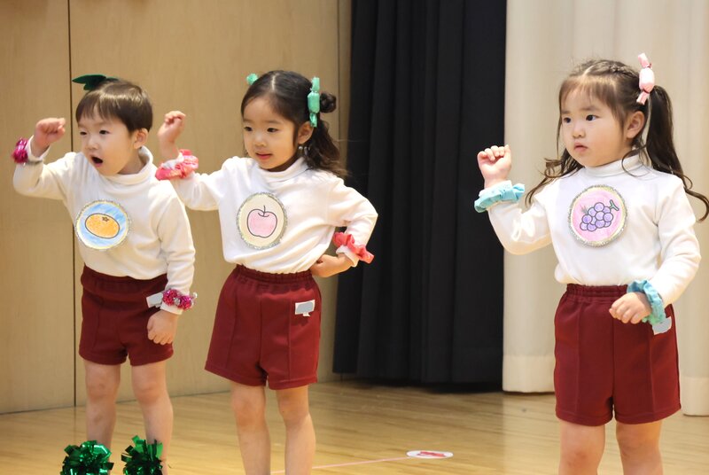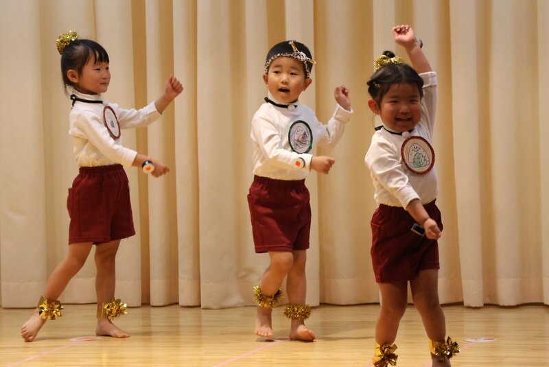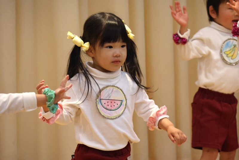 「自由自在」とは、ダンスのことよりも気持ちの切り替え方なのかもしれません。だって、「リラックス感」がすごいんですもの。これだけ心を解き放つことができるのなら、これからの幼稚園生活も、もっともっと楽しめることでしょうね。ぜひ、先生たちと一緒に、これからも楽しい幼稚園生活を送ってください。とてもすばらしい「いちご組」さんの「リズム発表会」でした。