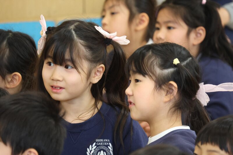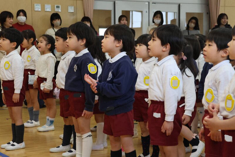 崩れてしまった直後、周りで応援していた女の子が、積み上げた女の子のことを抱きしめていたんです。思わず胸が熱くなる、とてもいい場面でした。「うさぎ組」さんとしての生活も、残りわずか……。年少さんとして過ごした1年間の集大成をみせていただいた気がしました。