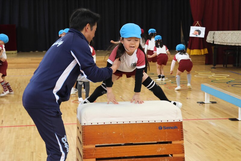 年長さんは、火曜日なので「体操指導」がありました。きょうのテーマは、「跳び箱」です。来週の「体操指導」では、恒例の「8段跳び」が控えています。きょうは、そのための予行練習といったところでしょうか。きょうの感覚を忘れずに来週の「体操指導」に臨んだら、いい結果につながるかもしれませんね。