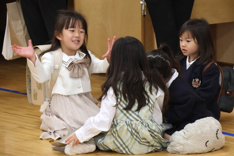 さて、入学のご報告にやって来てくれた1年生たち。慣れ親しんだ幼稚園のホールに入りますと、あっという間に過去へとタイムスリップ。そこには、ほんの数週間前まで繰り広げられていた光景がよみがえっていました。
