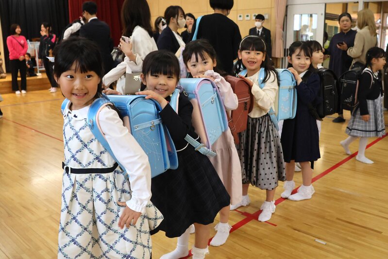 1年生たちがやって来たときは、あいにく小雨が舞うお天気でしたので、皆さんをホールへと誘導。ホールは、写真のように大勢の1年生と保護者の皆さまでにぎわいました。