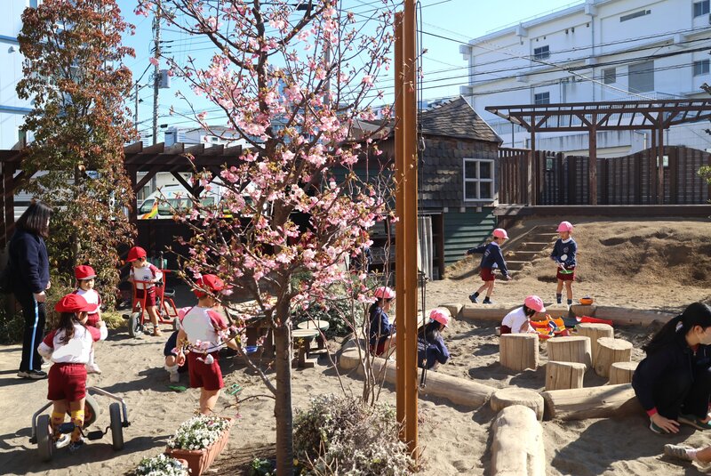 さて、「節分」を境にして季節も「真冬」に別れを告げ、きょうは「立春」です。杉之子幼稚園の早咲きの桜は、春の訪れを祝うかのように「立春」に花を添えていました。そのまわりであそぶお子さまたちの姿も、なんとなく軽やかにみえます。