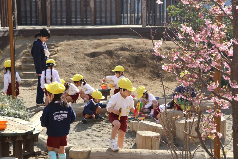 明日は、関東地方の平野部にも「雪」の予報が発表されていますが、きょうの日中は、そんな予報を信じることができないくらいのあたたかさでした。「ひよこ組」さんは、みんなで元気に園庭あそびにお出かけです。