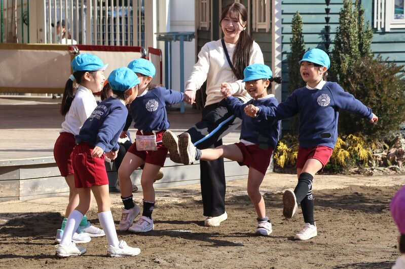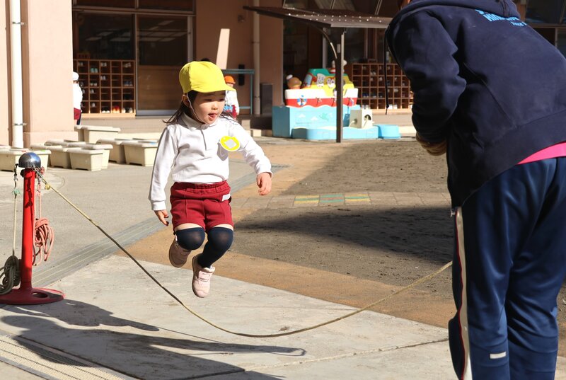 「すぎのこ de あそぼう」の最後は、お天気が良かったので園庭あそびになりました。園庭では、ちょうど年中の「たんぽぽ組」さんたちがあそんでおり、未就園のお子さまを気遣ってくれるお子さまもいて、微笑ましい光景がみられました。「先輩」たち、どうもありがとう。