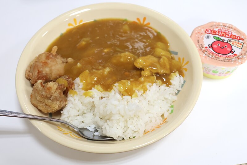 チキンカレー、鶏の竜田揚げ、リンゴゼリー 510kcal