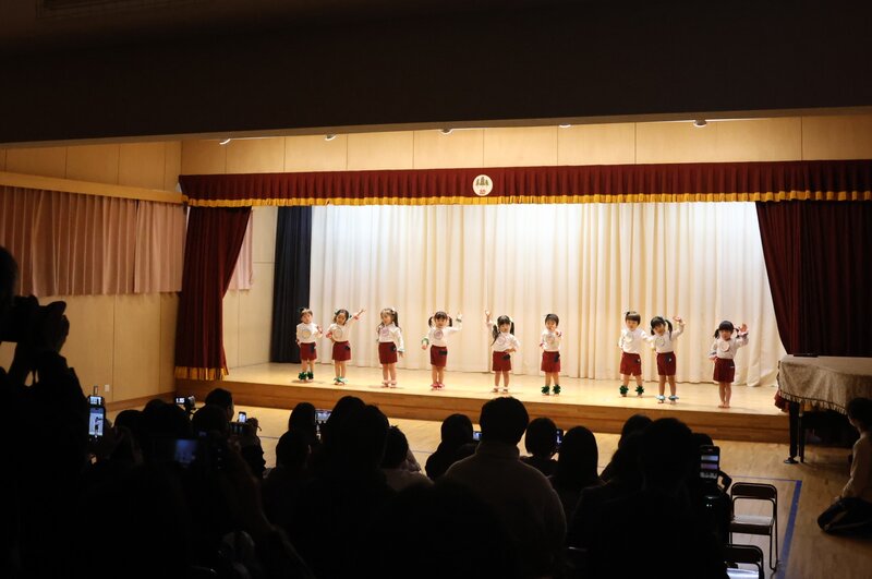 そして、こちらは2階のホールでおこなわれた「いちご組」さんの「リズム発表会」です。会場のホールには、大勢の保護者の方がいらしてくれて、ちょっとびっくり。それだけ、お子さまたちへの関心が高いということでしょう。とても、うれしく思いました。