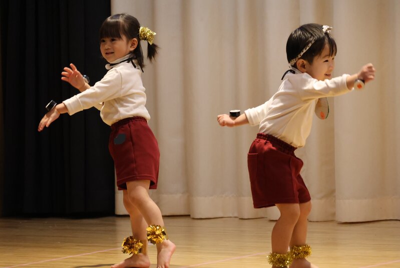 「自由自在」とは、ダンスのことよりも気持ちの切り替え方なのかもしれません。だって、「リラックス感」がすごいんですもの。これだけ心を解き放つことができるのなら、これからの幼稚園生活も、もっともっと楽しめることでしょうね。ぜひ、先生たちと一緒に、これからも楽しい幼稚園生活を送ってください。とてもすばらしい「いちご組」さんの「リズム発表会」でした。