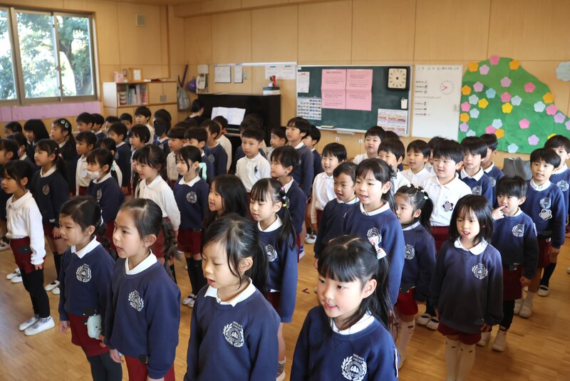 そして、2枚目の写真。1枚目の写真との違いにお気づきでしょうか。そう、簡単ですよね。反対向きになっているだけですから。では、なぜ反対を向いているのでしょう。ここが、重要なポイントです。この反対向きでお子さまたちがうたを歌っているときに、先生たちは思わず涙を浮かべていました。この「反対向き」には、そういう意味があるんです。答えは、卒園式当日までお預けにしておきましょう。