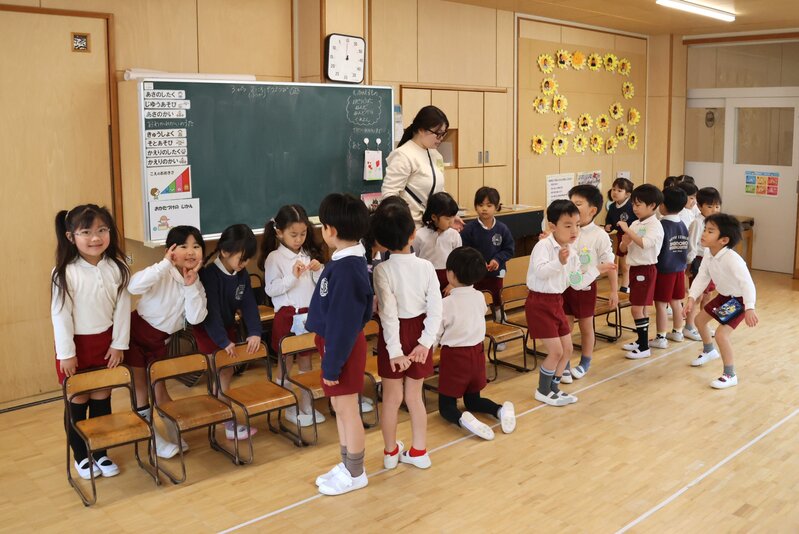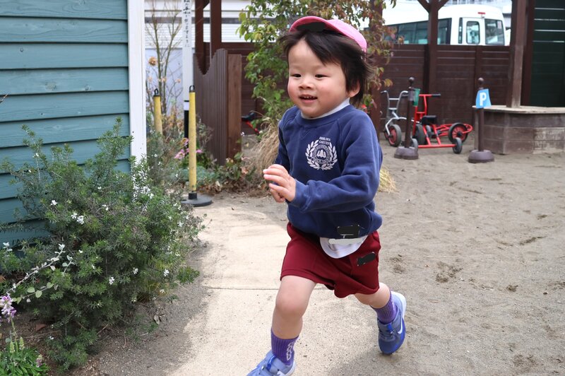 そんな陽気でも、このクラスは元気です。まもなく年少さんへと進級する「いちご組」さんのお子さまたち。