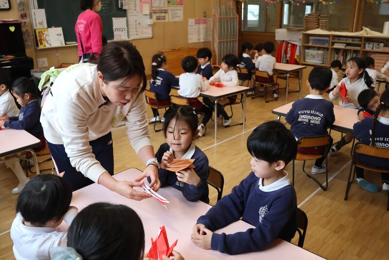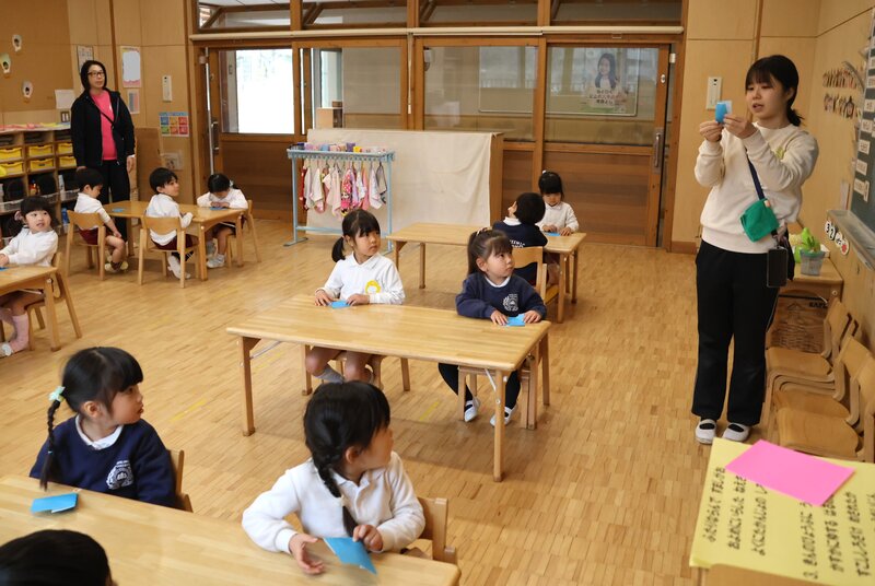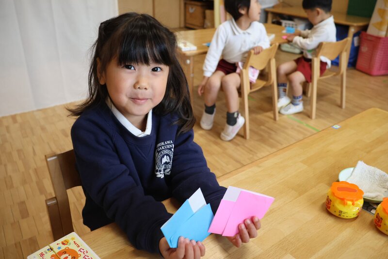 手順は、それほど多く無いようで、年少さんのお子さまたちも一生懸命に折っていました。