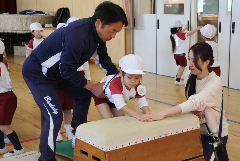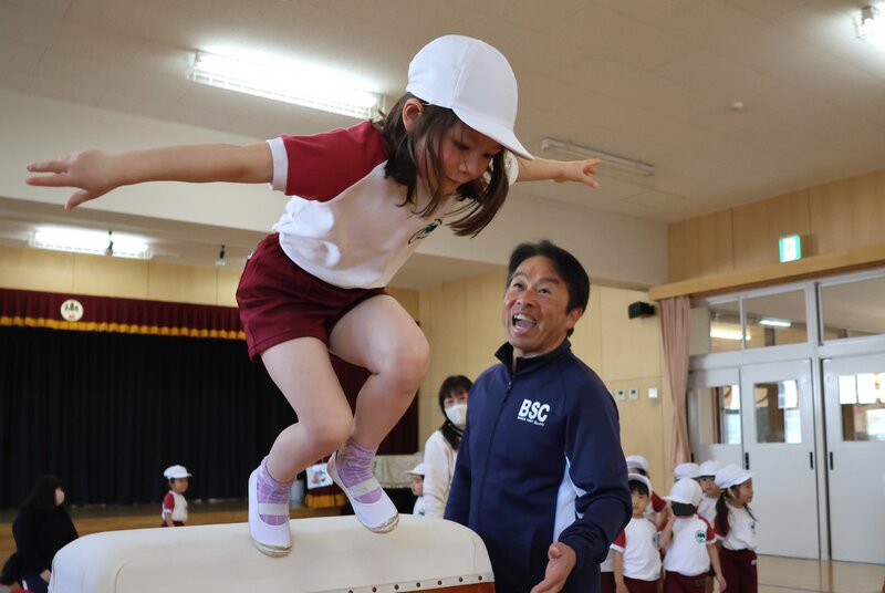 年少さんは、水曜日なので体操指導がありました。きょうも、定番の「ゆかいな準備体操」でスタート。なんとなく、まとまっているようでまとまっていない、この感じが年少さんらしさなのですが、この子たちも1か月後には年中さんです。年中さんになったら「ゆかいな準備体操」を卒業して、「ヤル気の準備体操」にシフトしたいところですね。