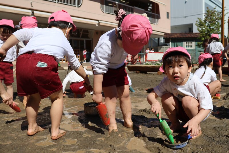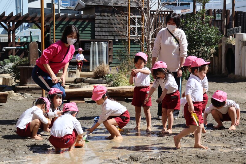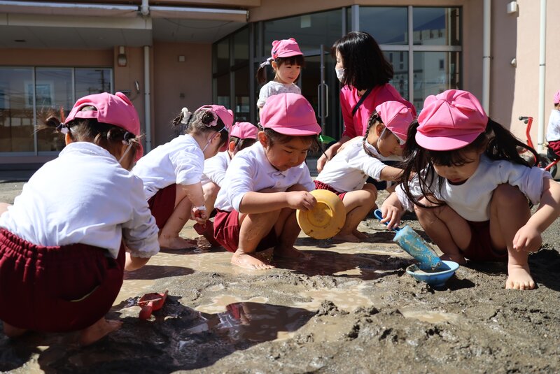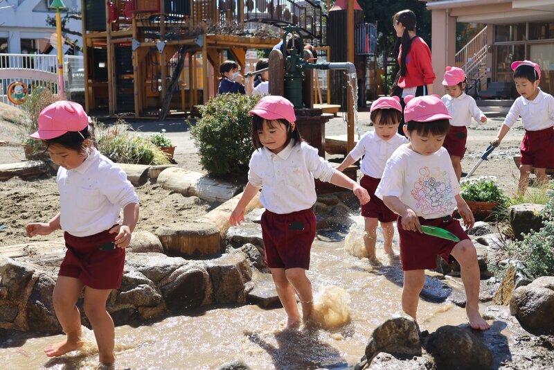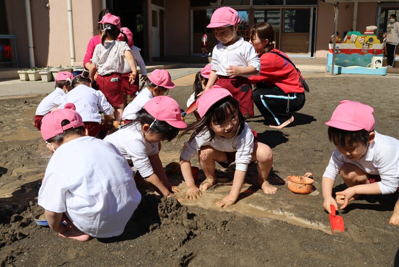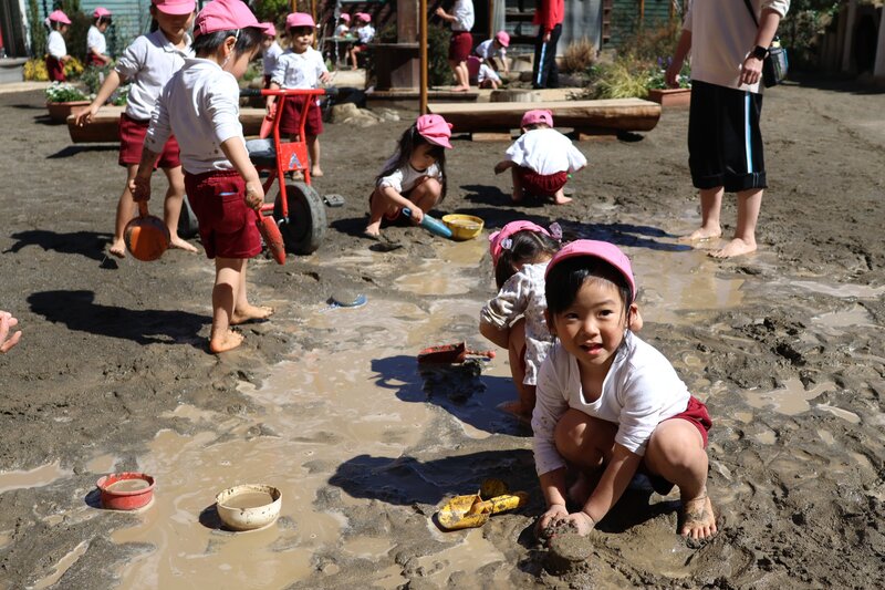 「はだし」「どろんこ」「水遊び」と、園庭あそびの3本柱を見事にクリアしてくれた「いちご組」の皆さん。年少さんへの進級を前にして、少しずつ育っていた芽がいよいよ開花したみたいです。年少さんでの「ご活躍」が楽しみになった「いちご組」さんのお子さまたちでした。