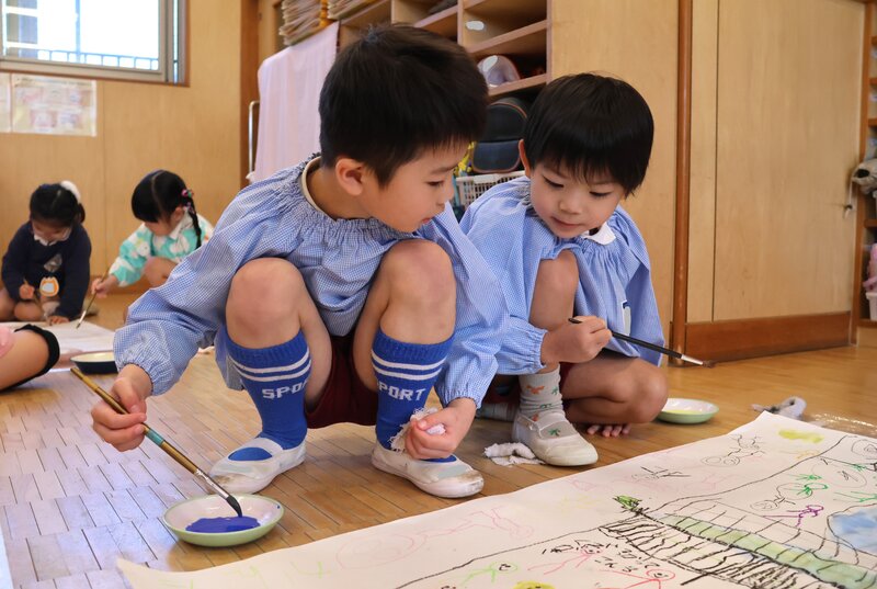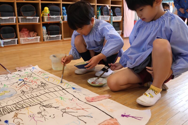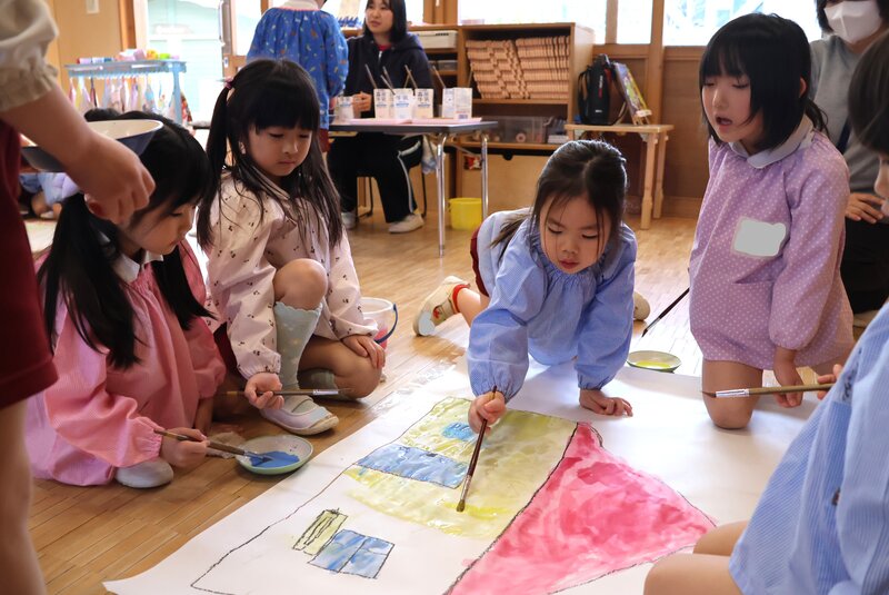 どこをどのような色で塗るか、お友だちと相談しながら決める場面もしばしばみられ……、