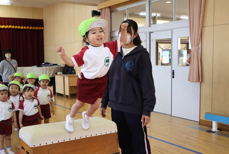 跳び箱の上に登ったら、思いっきりジャンプ!!