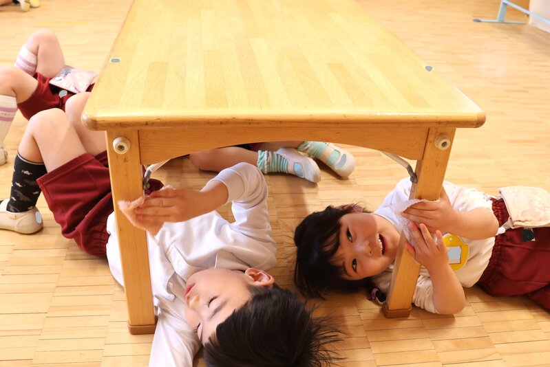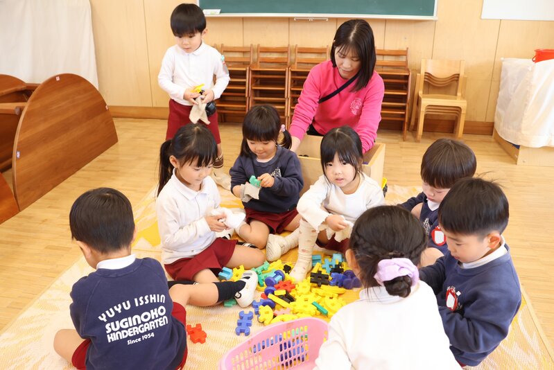 こうしてみんなで協力し合う姿は、もはや「年少さん」の域を超えていました。年中さんに向けての準備は、もうバッチリみたい。そんな頼もしさを感じさせてくれた、きょうの大掃除でした。