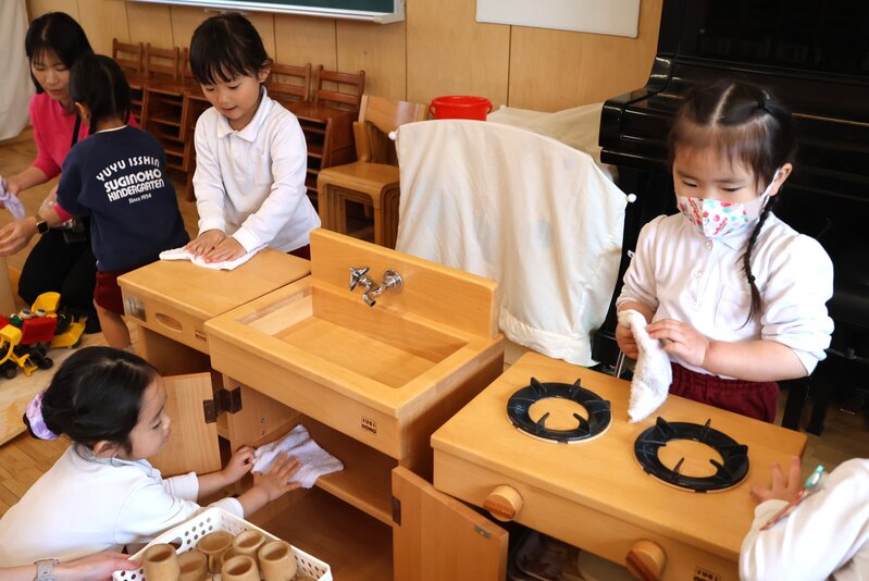 これから年少さんだというのに、この頼もしさは何でしょう。みんな、一生懸命にお掃除をしてくれたので、お部屋の遊具やお道具は、みんな大よろこびだったことでしょうね。