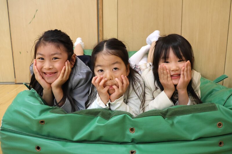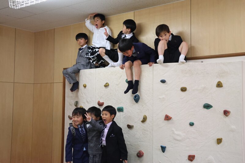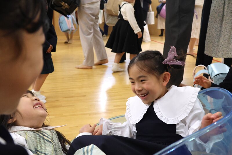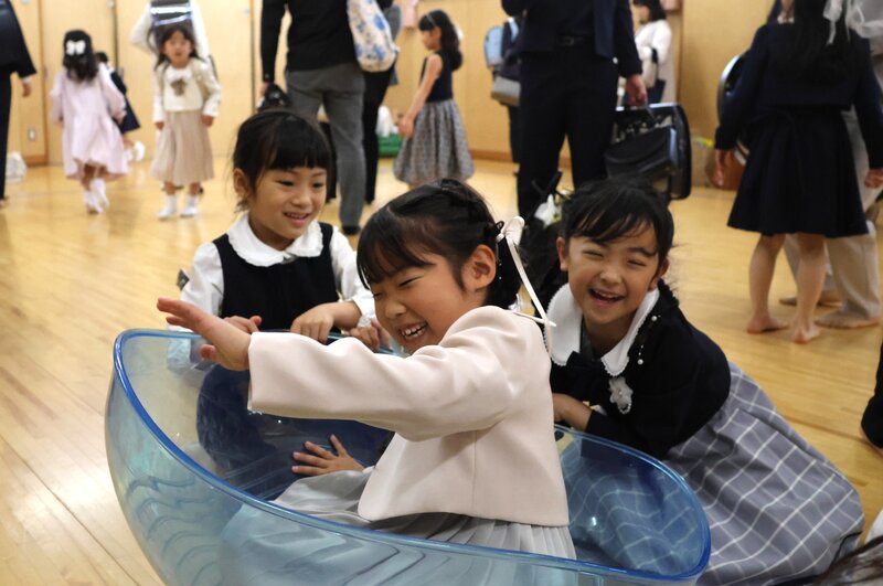 さて、入学のご報告にやって来てくれた1年生たち。慣れ親しんだ幼稚園のホールに入りますと、あっという間に過去へとタイムスリップ。そこには、ほんの数週間前まで繰り広げられていた光景がよみがえっていました。