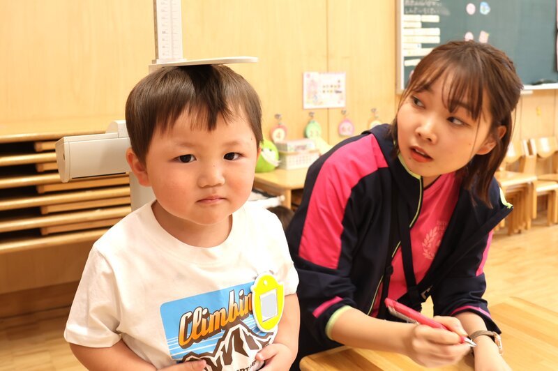 計測するのは、身長と体重。これからの成長が楽しみです。