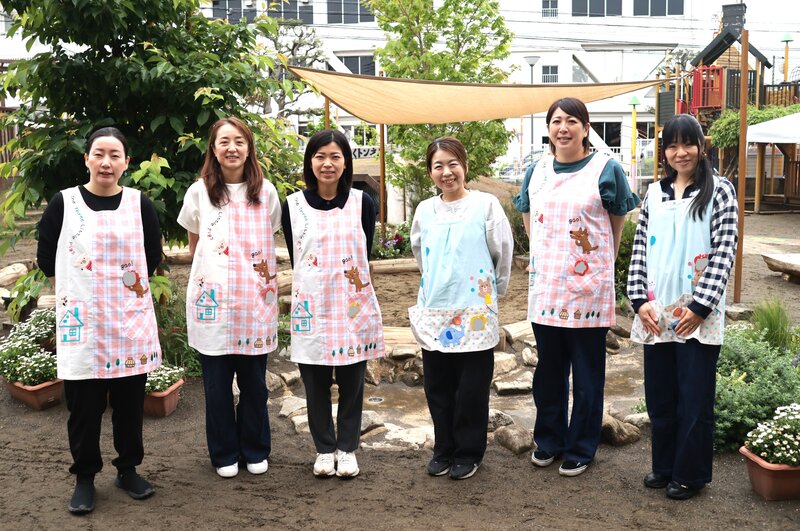 というわけで、きょうの「ママ先生」たちをご紹介しましょう。きょうは、6人体制でした。そういえば、きょうの保育後のミーティングで、小学校で研修してきた職員が「小学校でもママ先生がいるんです」と言っていました。やっぱり、「ママ先生」は頼りにされるんですね。これからも、どうぞよろしくお願いいたします。