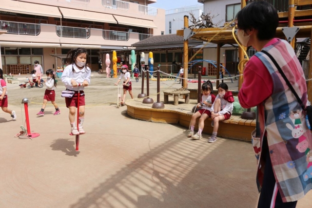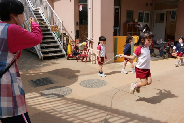 きょうは、3月31日。預かり保育=ヨコハマキッズを利用されている年長さんのお子さまたちにとりましては、キッズ利用の最終日、いわば「ラスト・キッズ」となります。 幸いなことにお天気に恵まれまして、園庭には朝からお子さまたちが繰り出し、年少・年中・年長と学年を問わず、みんなが思い思いの場所で楽しい時間を過ごしていました。 あかり先生が操る「大繩」では、「ホッピング」をしながら跳ぶ子がいるかと思えば……、