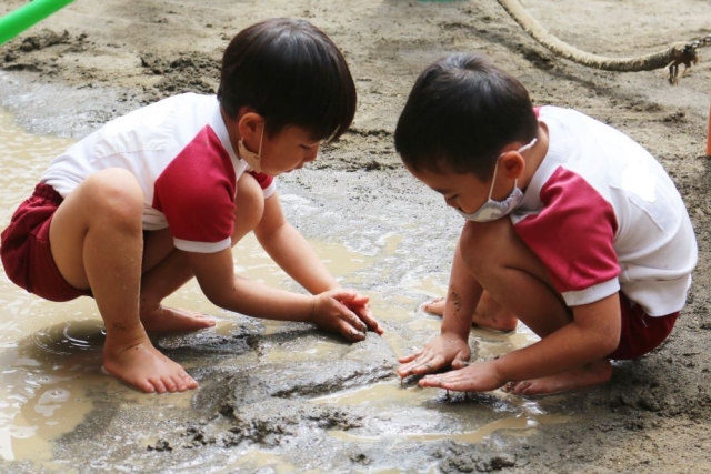 幼稚園での「あそび」は、この「学び」に通じるところがあるように思うのです。 お友だち同士で「こうしよう、ああしよう」と意見を交わしながら「あそび」を発展させることは、いろいろと「回り道」をしながら答えを探す「学び」以外の何物でもないように思います。