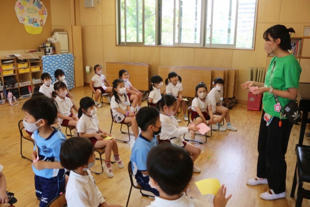 新しい1週間がはじまりました。今週、最初の行事は「お誕生日会」です。各クラスでは、5月生まれのお子さまたちを、クラス全員でお祝いしていました。写真は、「りす組」さん。 「りす組」さんの5月生まれはひとりだけのようなのですが、「ゆき組」さんは8人もいるそうです。ちょっとびっくり。 陽(あさひ)先生は、このあと5月生まれのお子さまに「ケーキ」をプレゼントしました。といっても、もちろん「本物」ではありません。いったい、どのようなケーキだったのでしょう。お子さまに聞いてみてくださいね。