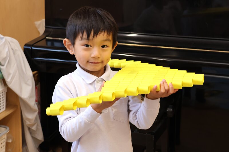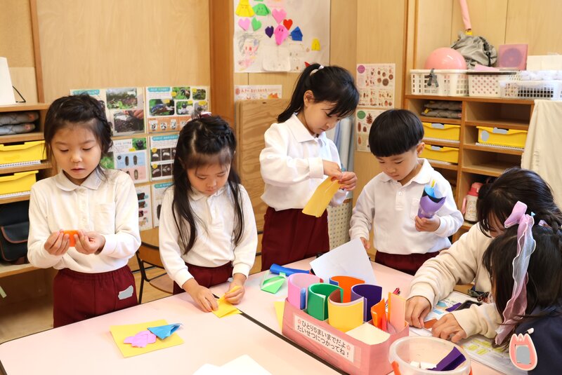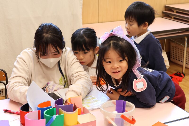 そんな中でも比較的にぎやかだったのが、「ゆり組」さんでした。先生に難易度の高い「折り紙」の製作をお願いしたり、ブロックあそびをしたり……。