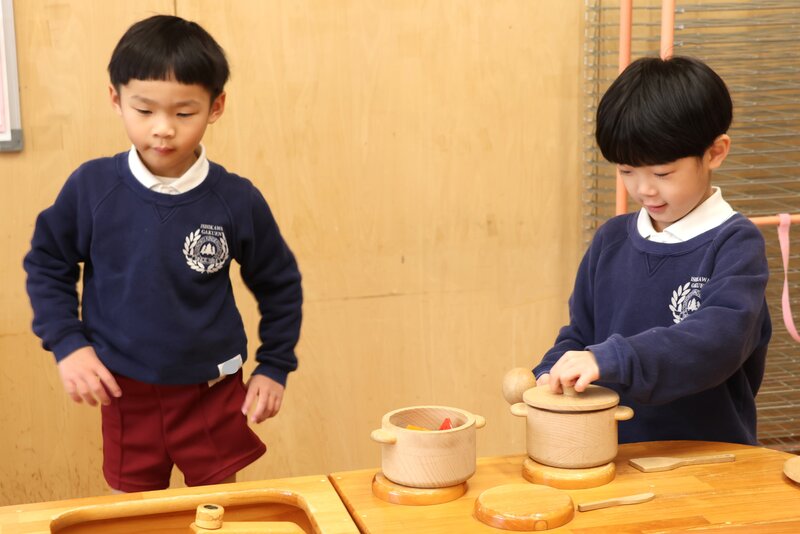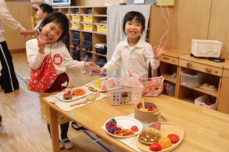 おままごとセットの前では、こんなシーンも繰り広げられていました。お鍋の中では、いったいどんなお料理が作られているのでしょう。