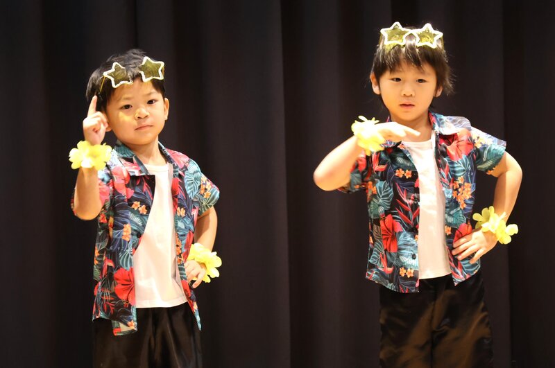 続いて登場したのは、年中の「ひまわり組」さんです。1曲目は、男子による「ギラギラサマー」。リハーサルのときには、「やっちゃいそうな感じ」のお子さまたちとしてご紹介をさせていただきました。