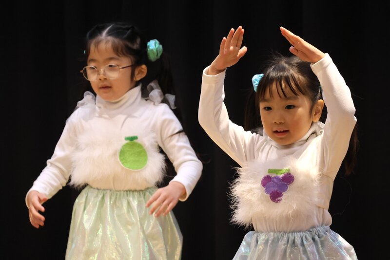 きのうで2学期が終わり、杉之子幼稚園は、きょうから「冬休み」に入りました。いつもですと、「冬休みキッズ」のようすなどをお伝えするところなのですが、きょうの午前中は外部で研修があり、不在にしておりました関係でお子さまたちのようすがよくわかりません。そんなこともあって、きょうは「冬休みキッズ」のようすではなく、先日おこなわれました「生活発表会」の未発表写真をご紹介させていただきたいと思います。その第1弾は、「くま組」さんと「りす組」さん。どちらも、「生活発表会」の初日に登場した年少さんのクラスです。