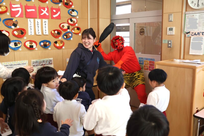 中には、涙を流しながら先生を助けるお子さまもいました。「鬼之子幼稚園」とは違って、杉之子幼稚園のお子さまたちは、みんなやさしくて、頼もしいんです。鬼さんたちも、杉之子幼稚園のお子さまたちの強さを、まさしく肌で感じたことでしょう。
