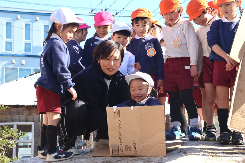 「まと」になるのは、ほとんどが先生たち。もちろん、先生たちも反撃に出ますから、園庭には先生とお子さまたちの楽しそうな声が響きます。