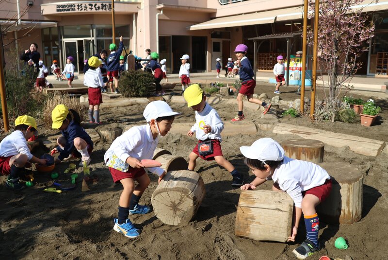 そのことを前提にしつつ、朝の園庭あそびの写真をご覧いただきながら、お客さまたちを杉之子幼稚園の「園内探検」にご案内したときに目にした各クラスのようすなどを、ちょっとだけお話しさせていただきたいと思います。
