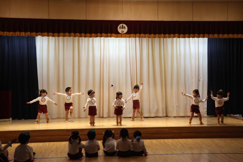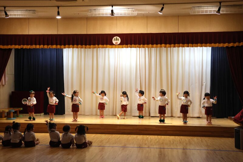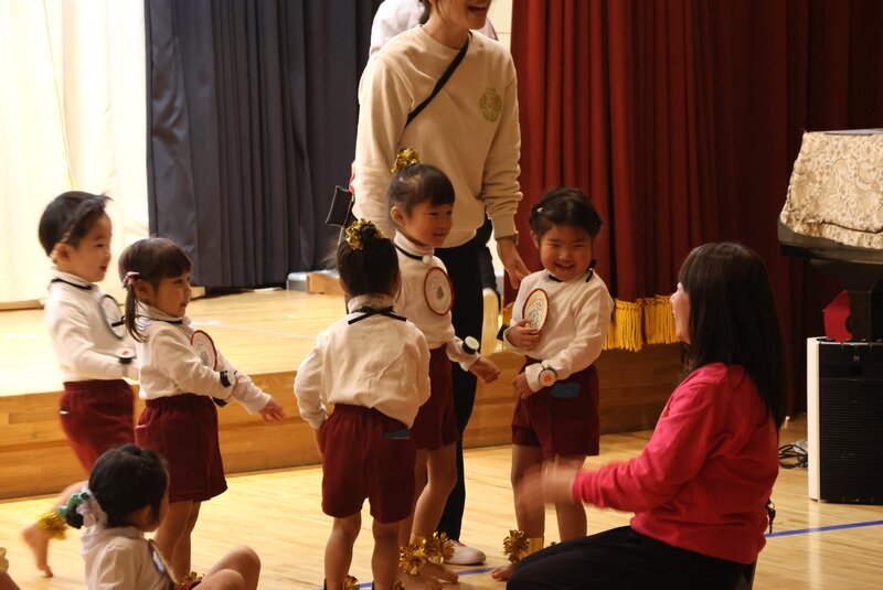 ステージが終わって客席に降りますと、練習を見守っていた園長先生があたたかく迎えてくれました。みんな、穏やかな表情で、ステージを楽しんでいる思いが伝わってきます。明日も、この感じで楽しみましょうね。短いようですが、「いちご組」さんに関する情報は、これでおしまい。あとは、明日のお楽しみにしておいてください。
