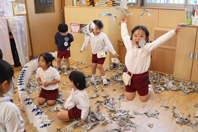 来週は、もう3月。いよいよ「春」がやって来る……、そう思える時期になりました。寒さで縮んでいたからだと心を思いっきり開放して、園庭を隅から隅まで楽しんでください。