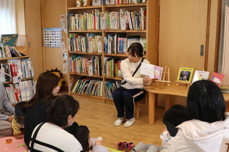 避難訓練のあとは、通常の生活のスタートです。図書室では「絵本専門士」である園長先生が、未就園のお子さまたちに絵本の読み聞かせをしてくれました。次回の読み聞かせは、現時点では未定です。日程が決まりましたら、ホームページでお知らせしますので、楽しみにしていてください。本日ご来園いただいた皆さま、ありがとうございました。この場を借りてお礼を申しあげます。