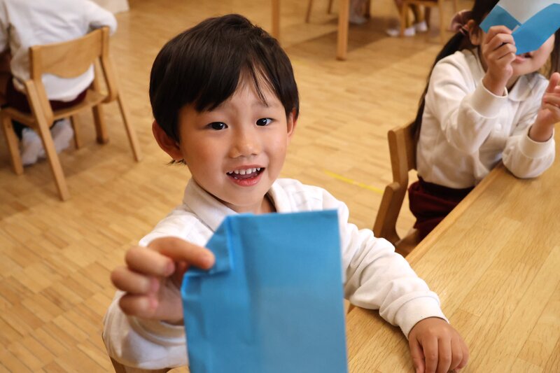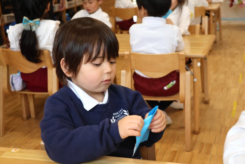 手順は、それほど多く無いようで、年少さんのお子さまたちも一生懸命に折っていました。