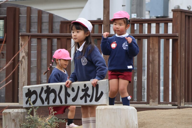 そんな陽気でも、このクラスは元気です。まもなく年少さんへと進級する「いちご組」さんのお子さまたち。