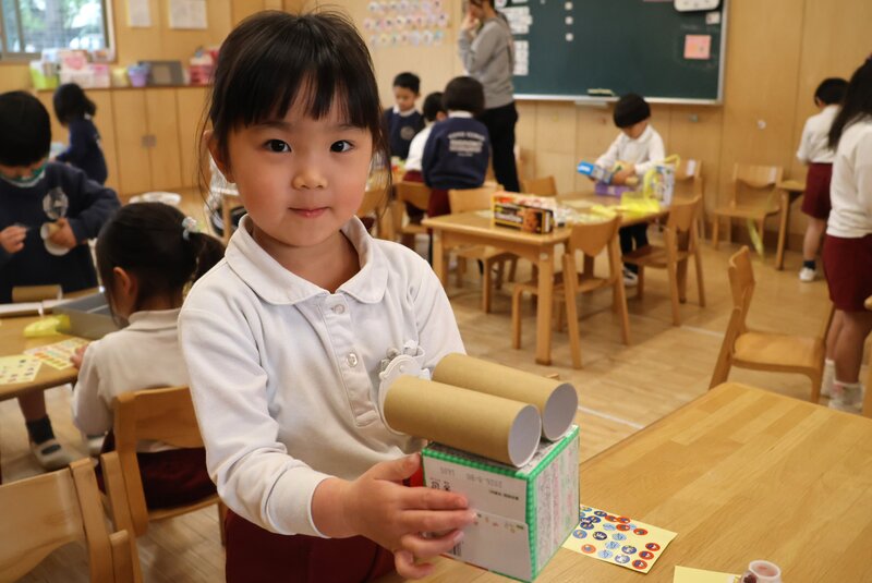 「ゴールが見えない」のは、このクラスも同じと言っていいでしょう。こちらは、「うさぎ組」さんの廃材あそびのようすです。