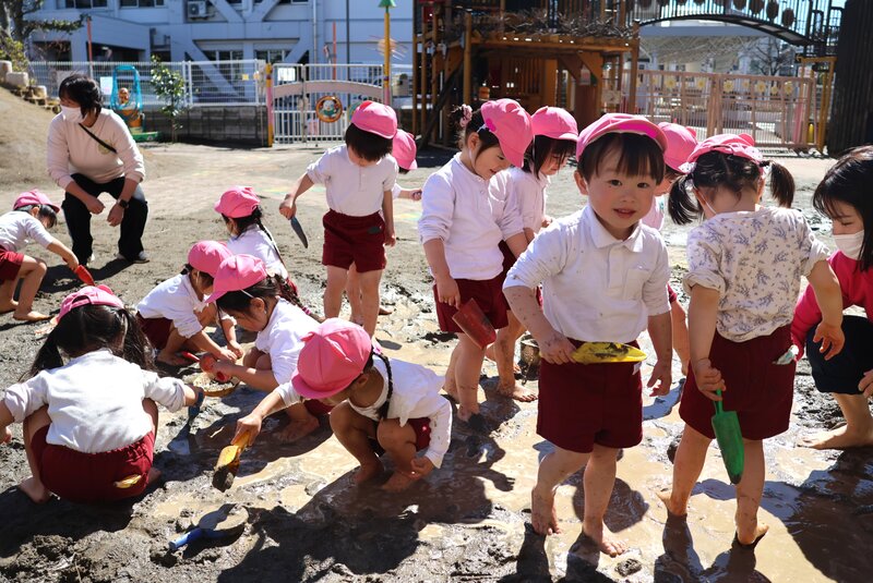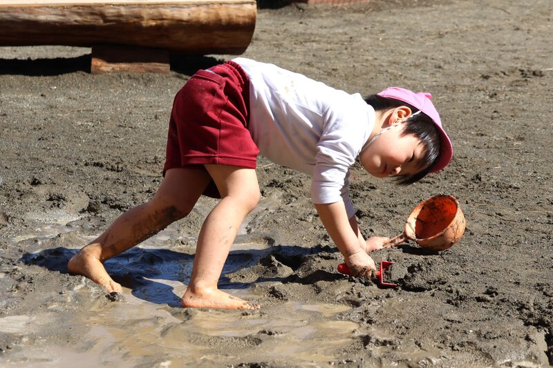 「はだし」「どろんこ」「水遊び」と、園庭あそびの3本柱を見事にクリアしてくれた「いちご組」の皆さん。年少さんへの進級を前にして、少しずつ育っていた芽がいよいよ開花したみたいです。年少さんでの「ご活躍」が楽しみになった「いちご組」さんのお子さまたちでした。