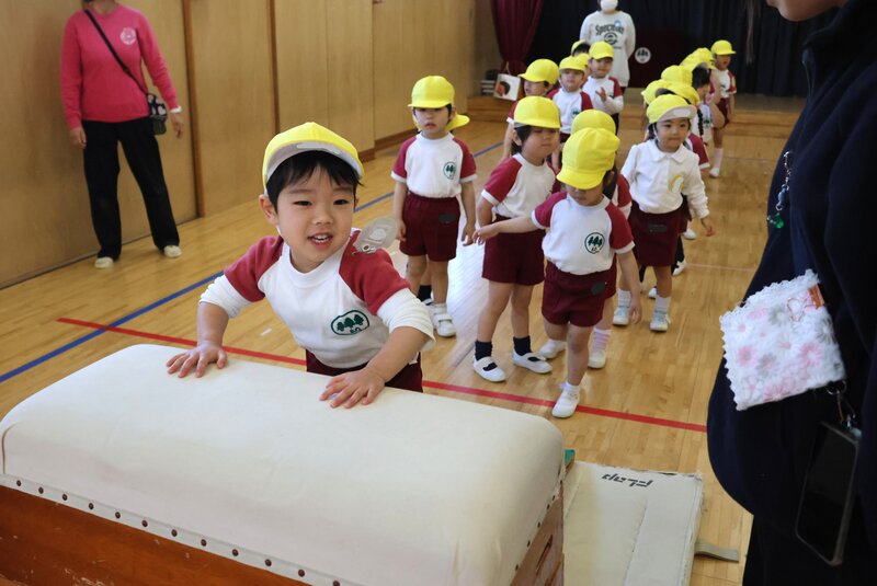 きょうのテーマは、「跳び箱」でした。でも、年長さんのように跳ぶわけではありません。