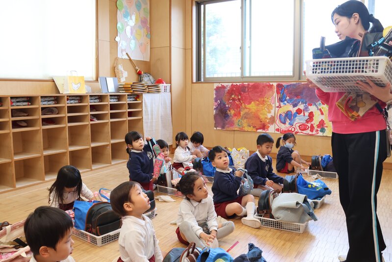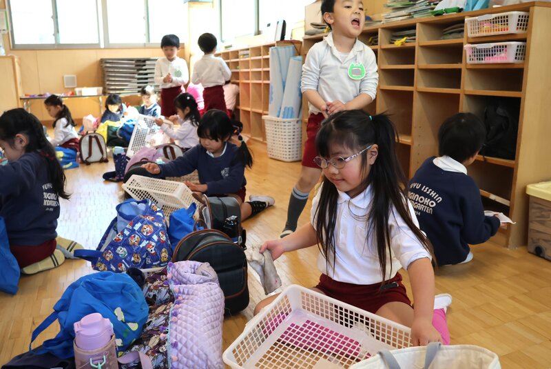 「たんぽぽ組」さんでも、自分の荷物を取り出して整理整頓。カゴやロッカーもきれいにしていました。
